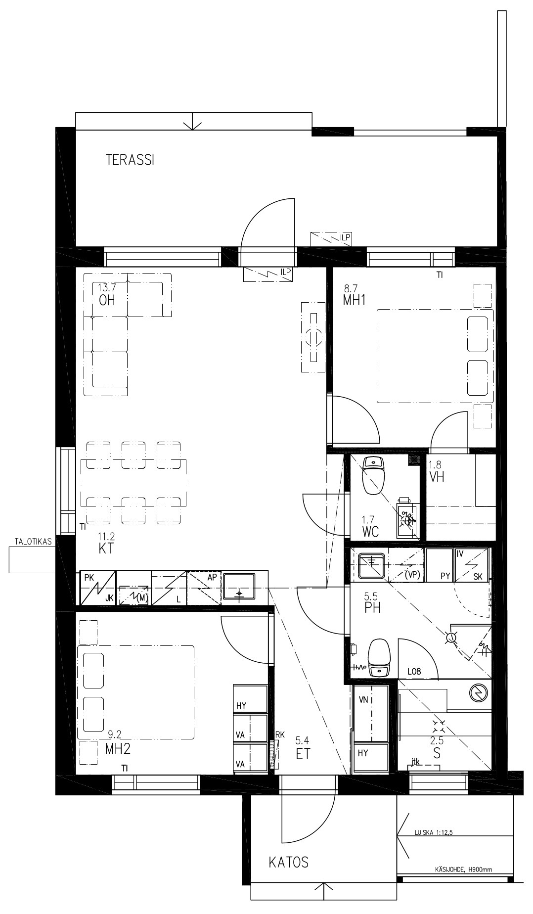 Huoneistotyyppi | 3h+k+s+vh |