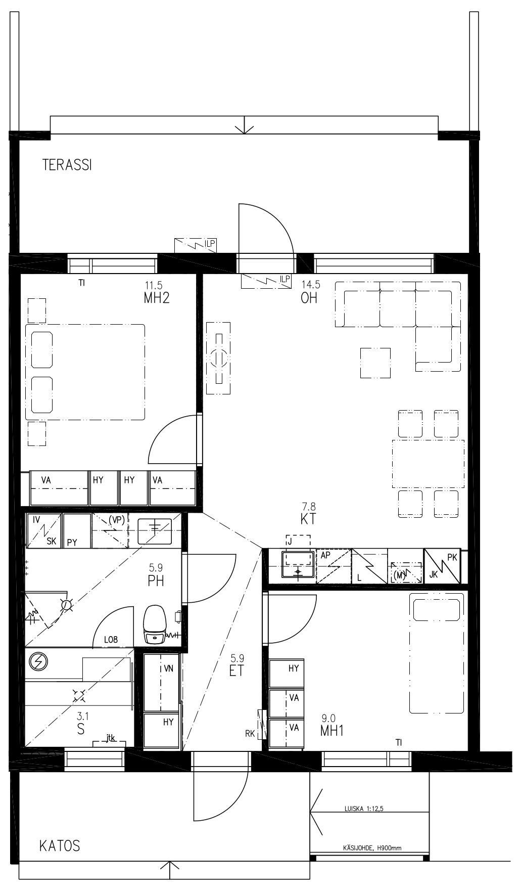 Huoneistotyyppi | 3h+k+s+vh |