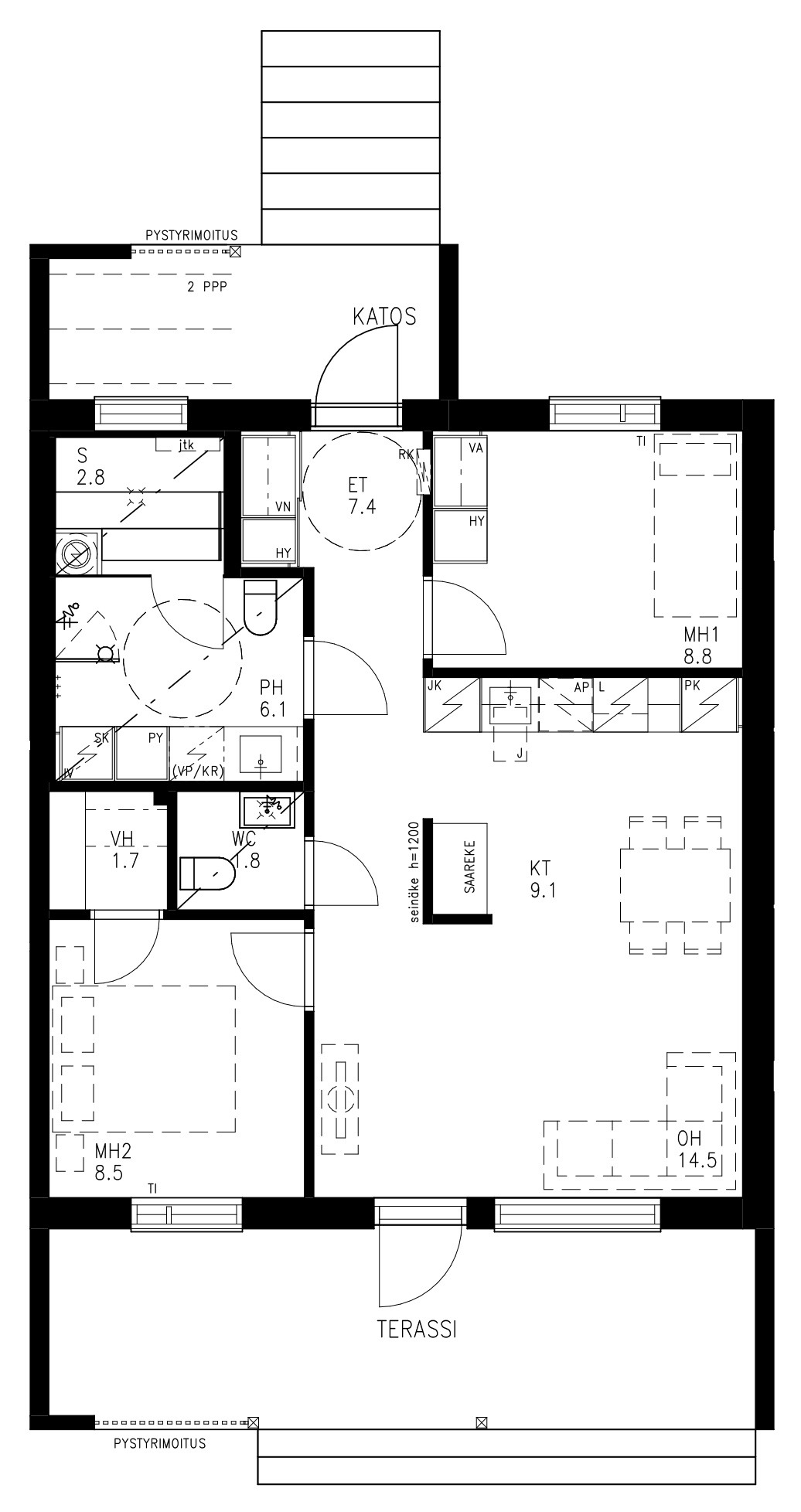 Toimiva kolmio maalämmöllä. Asunnossa valoisat huoneet, kaksi vessaa ja tilava katettu terassi. Lisäksi hyvät säilytystilat ja oma autokatospaikka sisältyy asunnon hintaan.