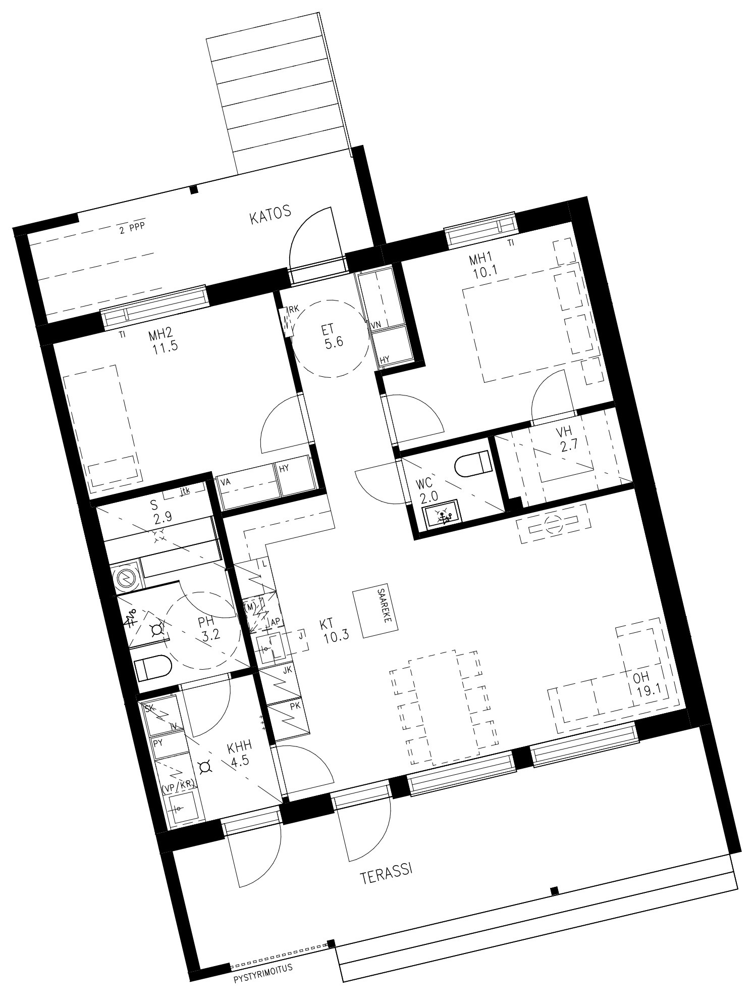 | Huoneistotyyppi | 3h+k+s+khh+vh |